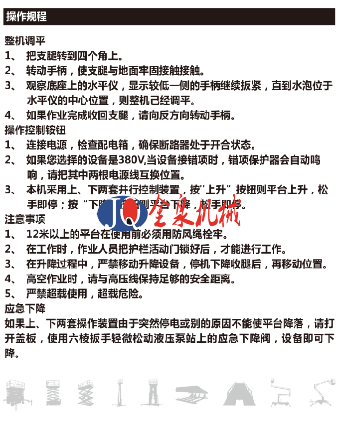 4.在维修保养和清扫升降平台时,一定要撑起安全撑杆。